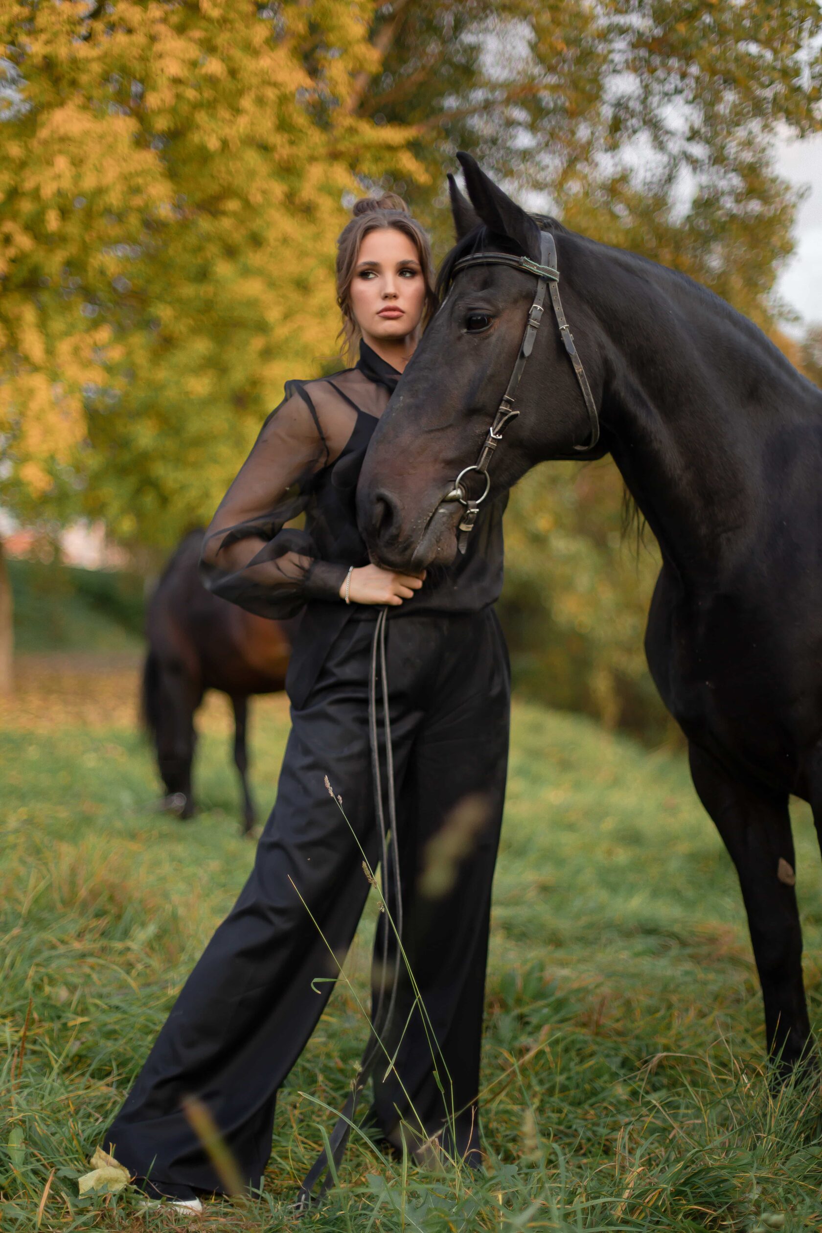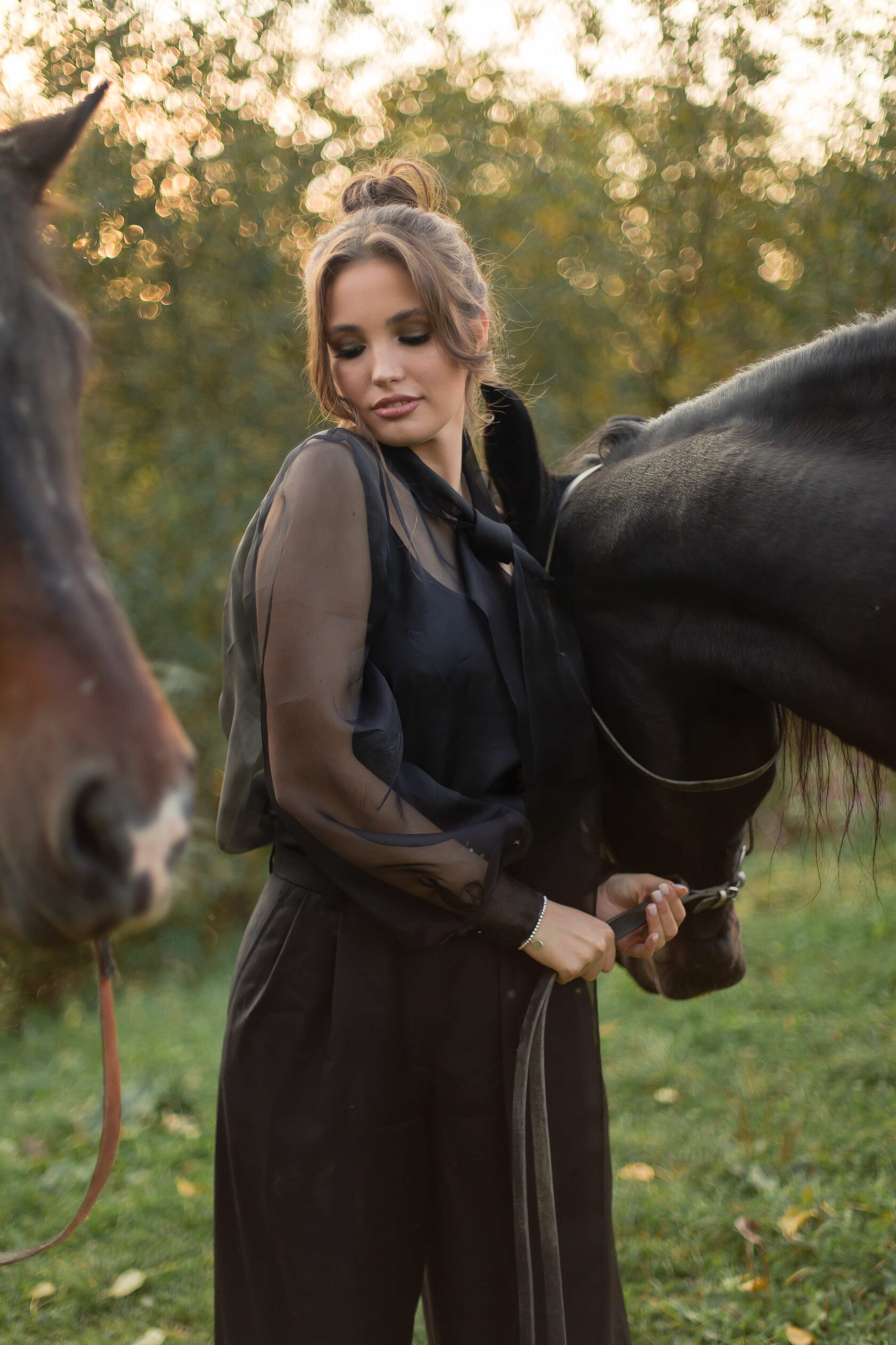 Была предложена и реализована яркая концепция — профессиональная модель с привлекательной внешностью и лошади на природе