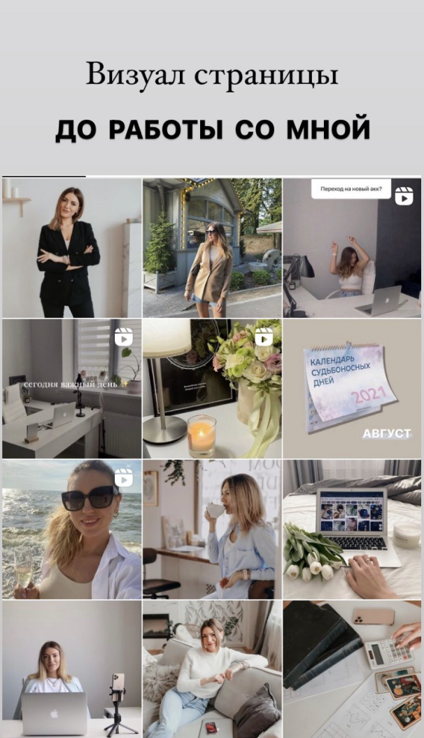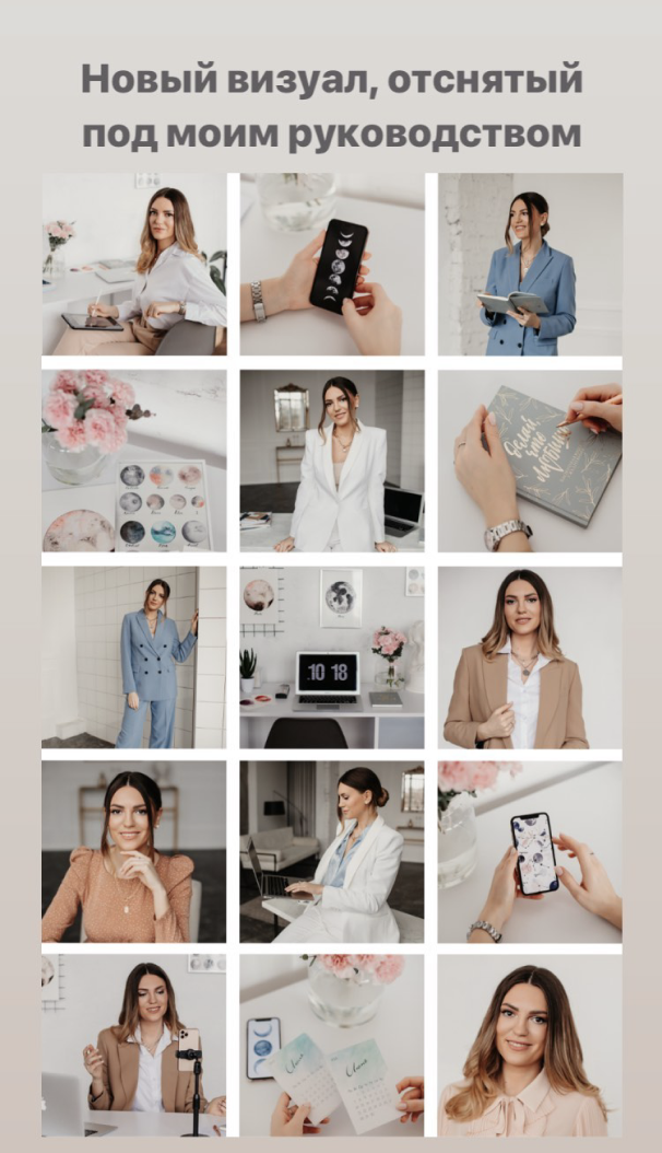 В дополнении к съемке была разработана лента для аккаунта в социальной сети. Сейчас Алина уже сменила позиционирование, но продолжила использовать отснятый материал в своих целях