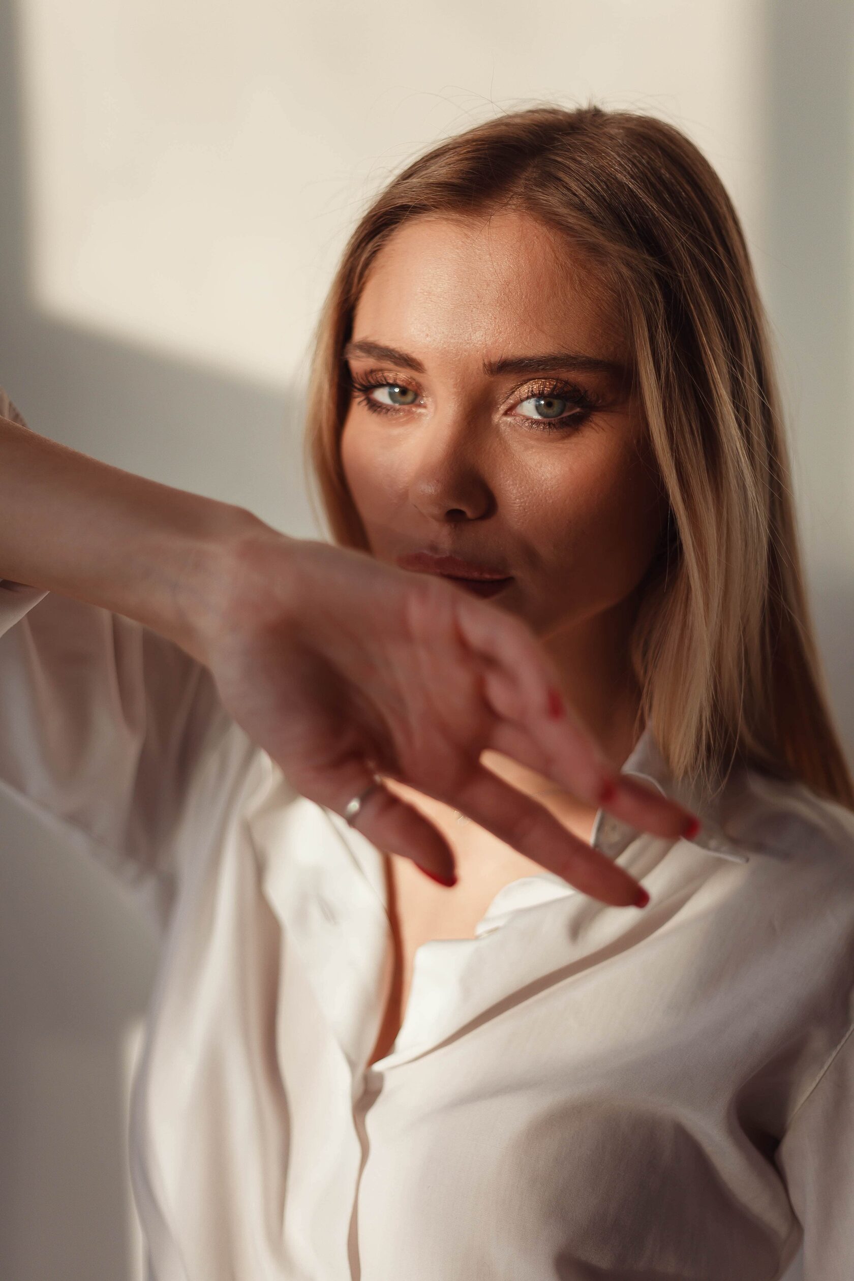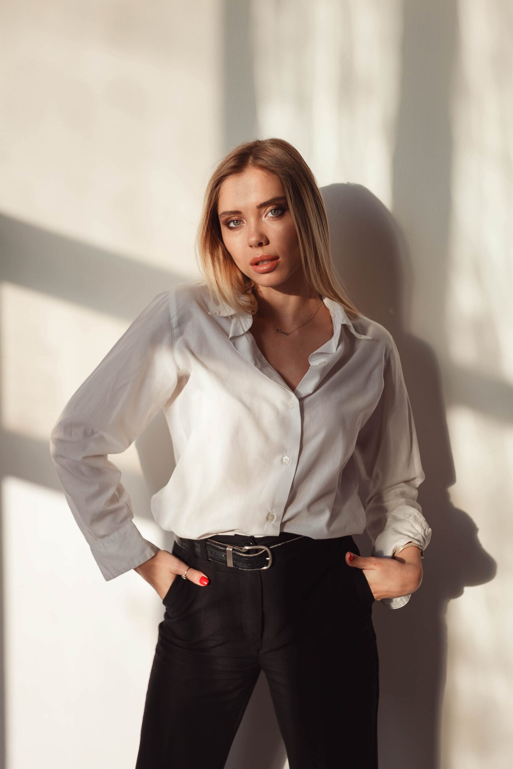 Даша — яркая и уверенная в себе девушка. Ей захотелось сделать сьемку в стиле минимализма, без отвлекающего, вызывающего интерьера