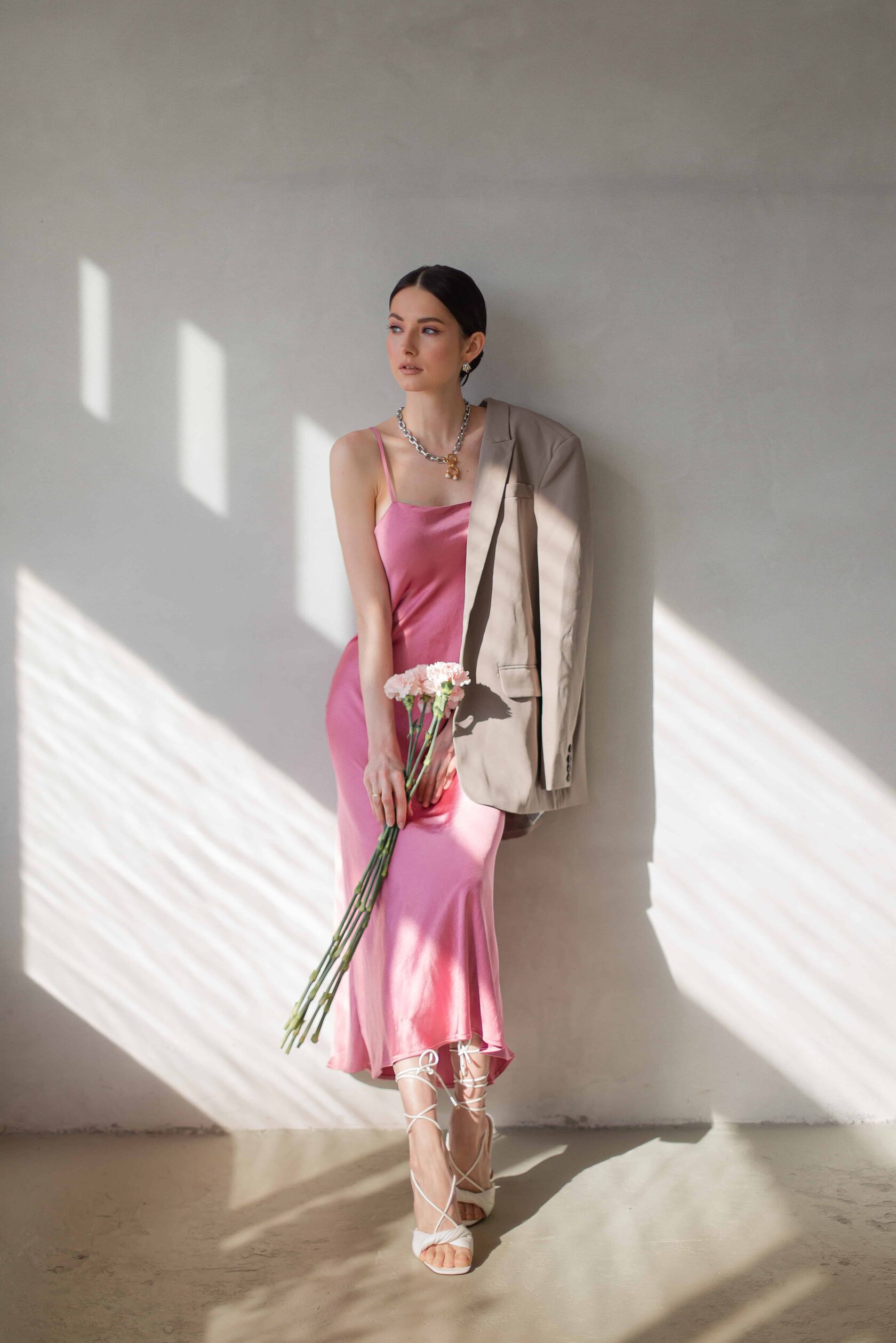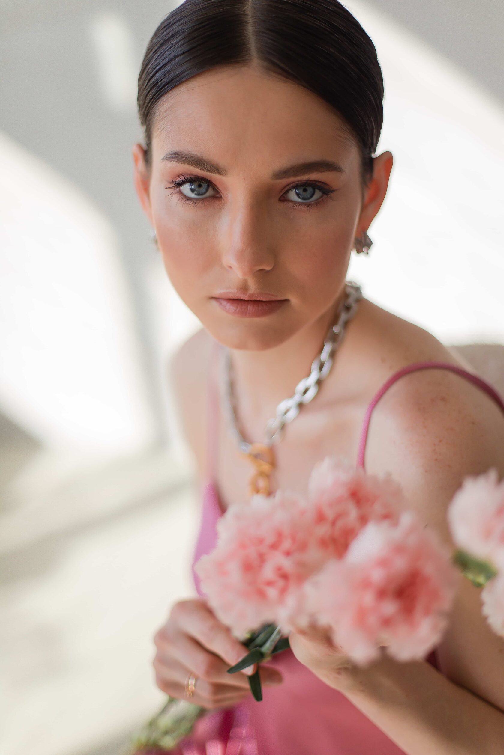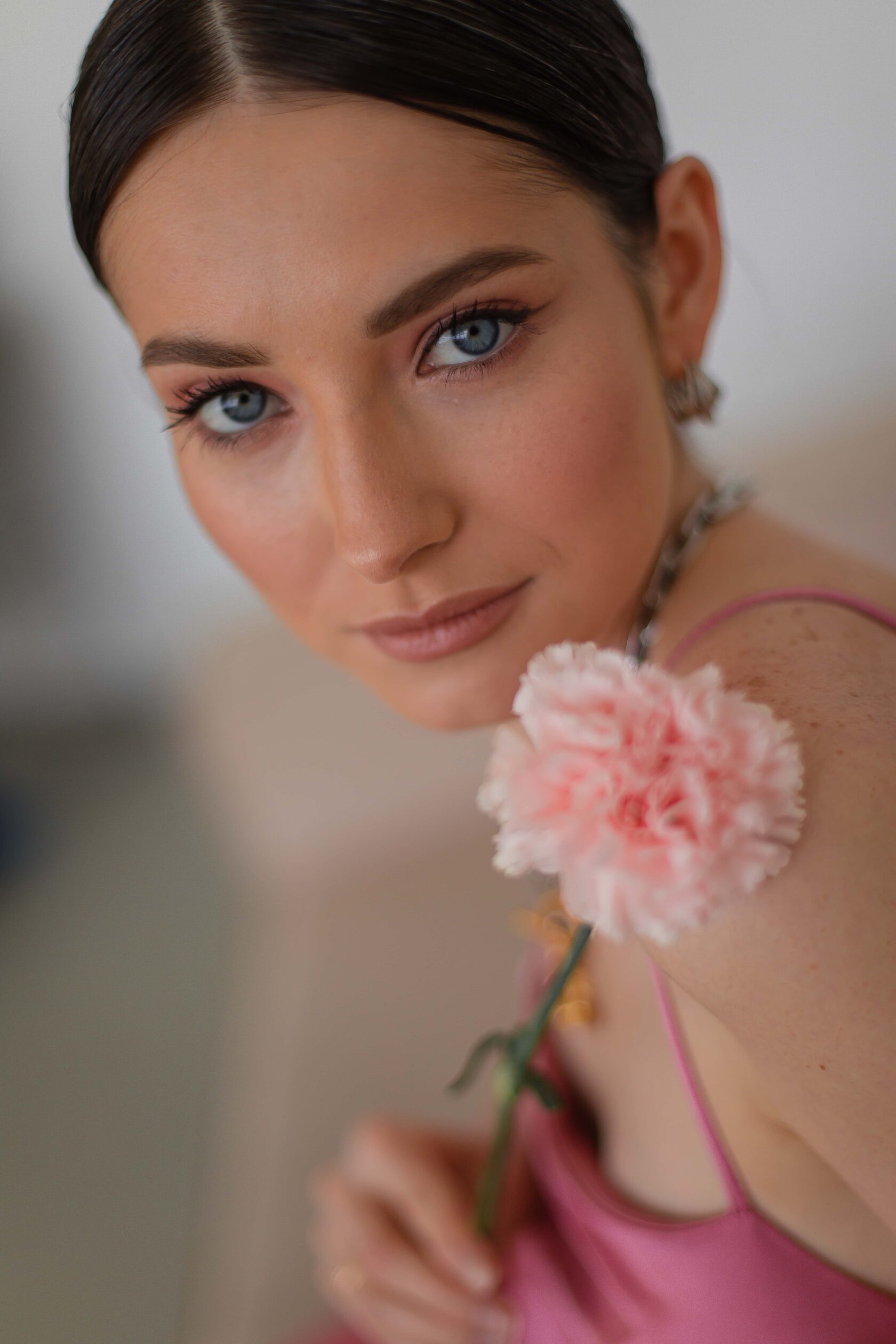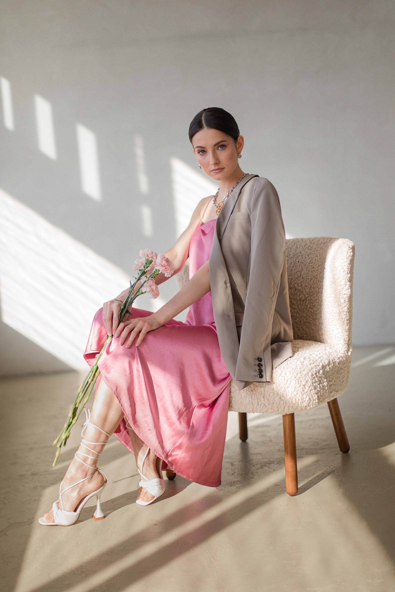 Я создала для нее красивый образ, подобрала концепцию и аксессуары. Также предложила использовать живые цветы на съемке для поддержания образа